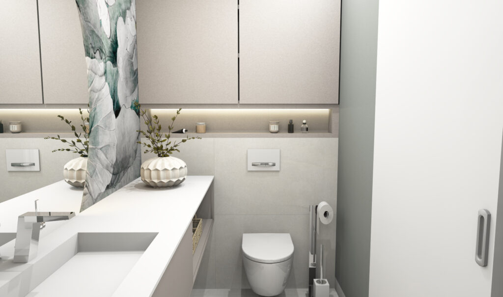 WC-Bereich: Stauraum nach oben – mit Licht inszeniert